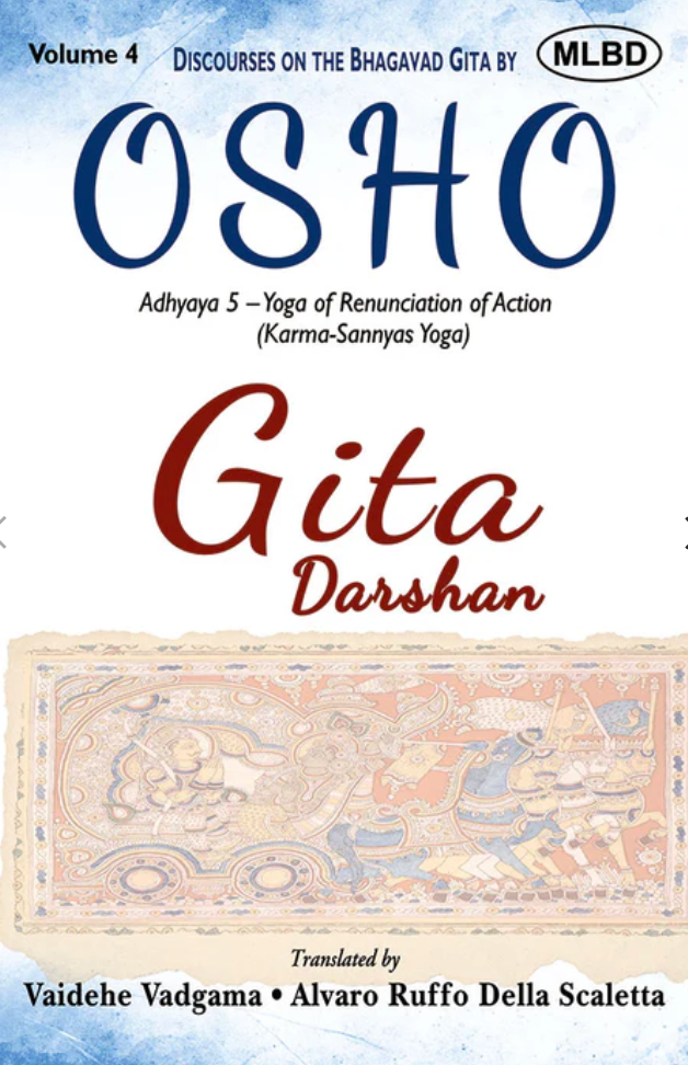 New Release. Coming soon! Adhyaya 5 - Yoga of Renunciation of Action (Karma - Sannyas - Yoga) Translated from HindiIn these discourses by Osho on Adhyaya 5 of the Bhagavad Gita, the paths of Karma Sannyas Yoga and Nishkam Karma Yoga are discussed. Osho approaches these paths from different perspectives and highlights their differences. Karma Sannyas Yoga is the path of renunciation of action, in which the seeker leaves behind the world, family, and possessions to live in a forest, a mountain cave, or a monastery. There, one dedicates one's entire life to non-action, meditation, prayer, and spiritual practices. This path is traditionally followed by sannyasins and monks, who are more introverted and feel at ease living in solitude. Krishna advises Arjuna to follow the path of Nishkam Karma Yoga, which He says will be easier for him to follow. Osho explains that this path is also more suitable and easier for modern individuals, who are extroverted and outgoing, much like Arjuna. On this path, the seeker continues to live in the world and perform actions, but renounces desires and expectations regarding the outcomes of those actions. In various sutras of this Adhyaya, Krishna offers Arjuna different keys-essentially small experiments and meditation techniques- that can be practiced in daily life. Osho elaborates on these techniques in detail and encourages us to adopt and practice them, emphasizing that mere intellectual understanding is not sufficient to bring about inner transformation. Softcover by MLBD, India